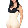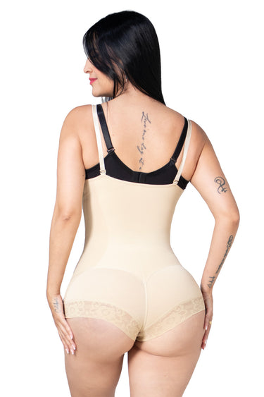 Faja senos libres, postparto o uso diario con espalda recta para ser mas versátil, cuenta con tiras removibles, tiene dos hileras de broches permitiendo ajustar la compresión abdominal y su moldeo de glúteos natural. Sistema de broches en la zona perineal que facilita un acceso rápido y práctico al momento de ir al baño.