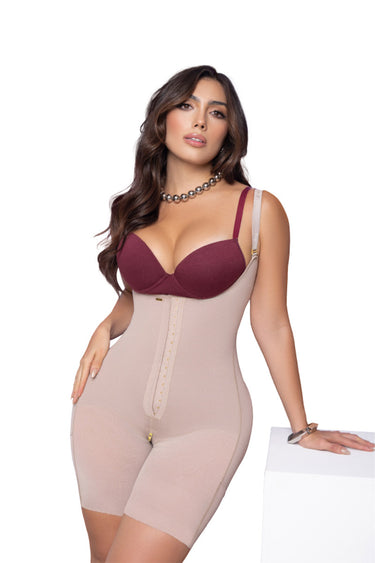 Luxury, cuenta con un refuerzo abdominal que define tu silueta con precisión. Su innovador realce de cola de durazno invisible asegura que tu figura luzca aún más curvilínea sin que se note bajo la ropa. Tiene dos posiciones de broches dorados que permiten ajustar la compresión de acuerdo a tus necesidades, brindando un soporte personalizado en todo momento. Su diseño de senos libres, espalda alta y tirantes proporciona mayor comodidad y sujeción, mientras que su tela ligera y transpirable incorpora una compresión inteligente para un ajuste cómodo y eficaz.