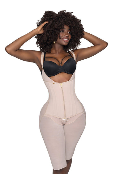 Faja, con cuatro niveles de broches y una solapa que brindan mayor ajuste y definición en tu cintura. Su diseño de espalda alta ofrece cobertura excepcional y, junto a sus 9 varillas ergonómicas, moldea tu silueta logrando el efecto tipo reloj de arena.
